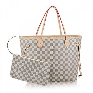31.0 x 30.0 x 20.0 cm (Length x heightx width ) Puffed handle2 adjustable flat shoulder strapsDamier Azur coasted canvas exteriorNatural cowhide leather trimPink microfiber liningG..