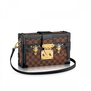 18 x 12 x 4 cm (Length x heightx width ) Removable leather strapDamier canvas bodyCalfskin trimGolden brass finishingsGolden brass SlockMagnetic closureLambskin lining1 open pocket..