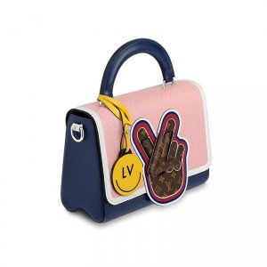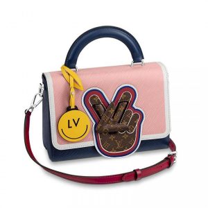 V for Vuitton morphs into a peace symbol on this Twist MM handbag. The motif is crafted from Mini Monogram canvas, which also covers the LV Twist lock, for a fun, trompe-l'oeil eff..