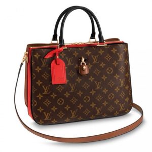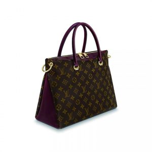 The glamorous Pallas combines iconic Monogram canvas with colorful grained leather for a very feminine, modern feel. This Full version is enriched with colorful leather gussets, fo..