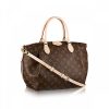 13 x 9 x 4.3 inchesCoated Monogram canvas and smooth calf leather Microfiber liningCalf leather trimGold colored metallic pieces2 Toron smooth calf leather1 removable nonadjustable..