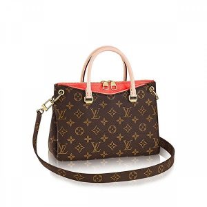 27 x 18 x 8 cm (Length x heightx width ) Articulated leather handlesRemovable cross shoulder strapCoated Monogram canvas & calf leatherMicrofiber liningNatural cowhide leather trim..