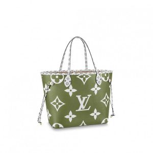 Playful, colorful, Neverfull: this season the iconic carryall wears a bold new spin on Monogram canvas. Oversized and Mini versions of the signature motif combine in sunny color pa..